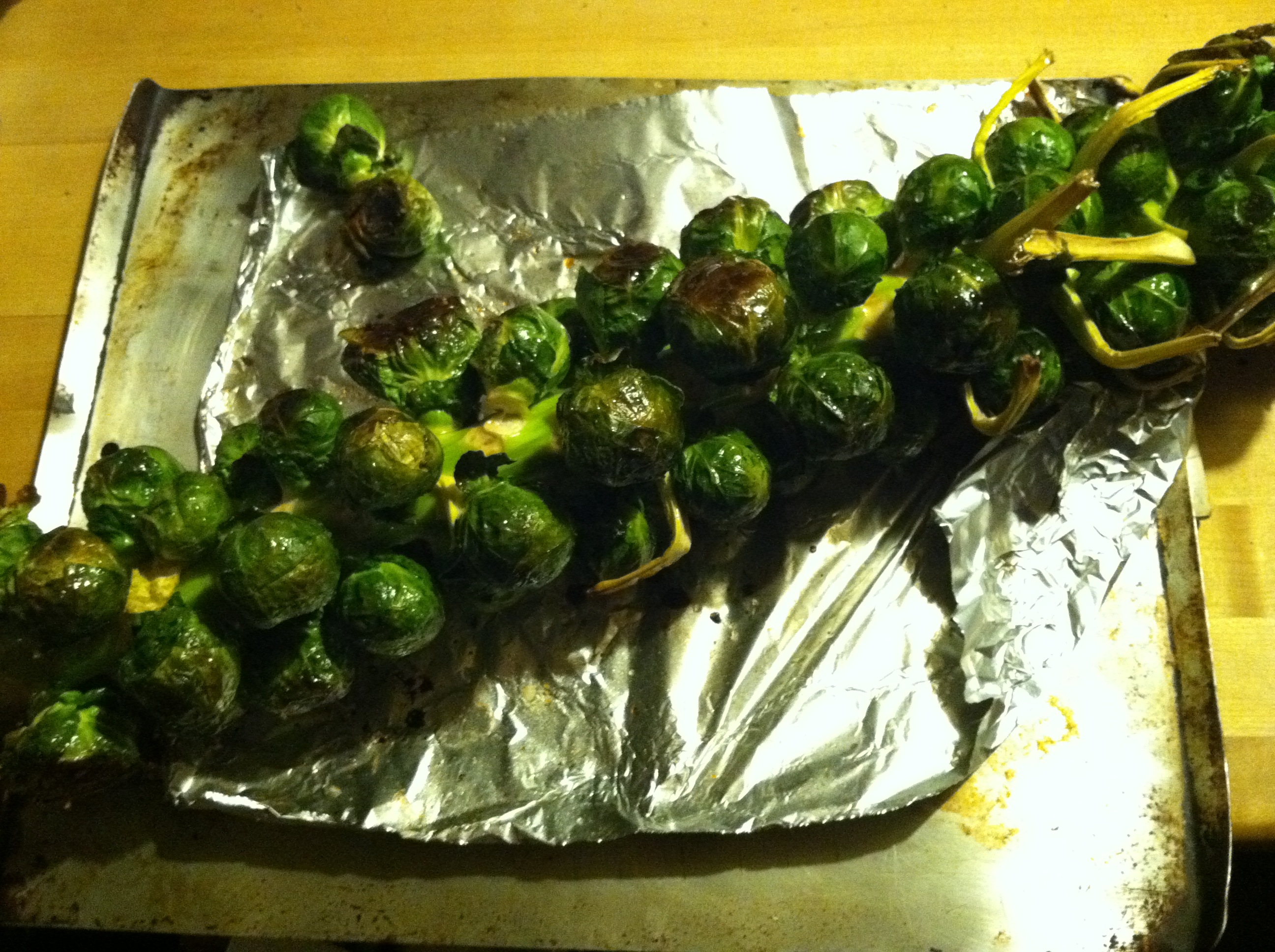 1 stalk Brussels sprouts, rinsed, outer leaves trimmed